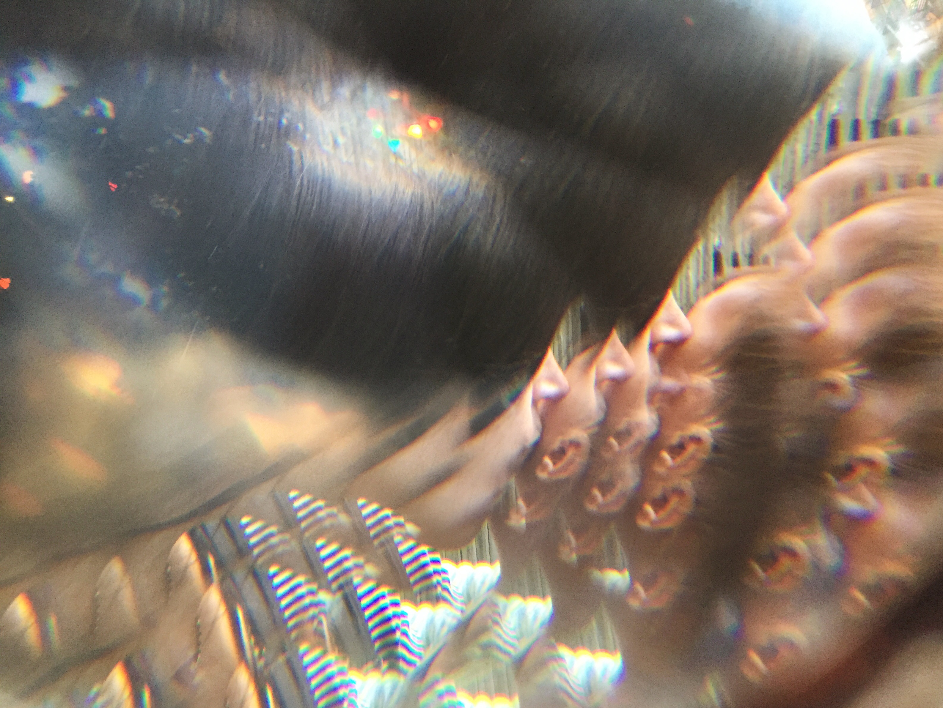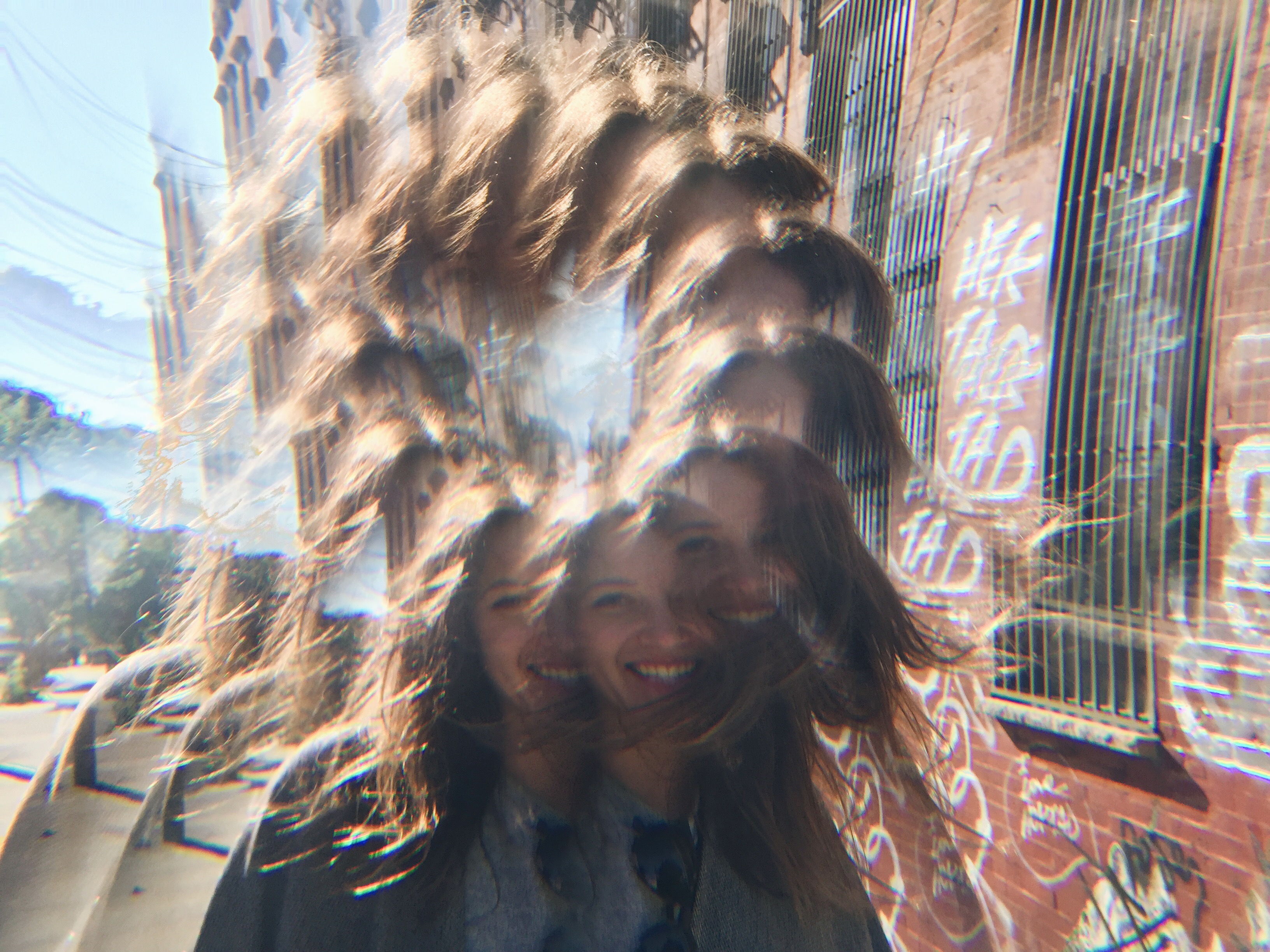 This designer hippie store is selling some really goofy prism glasses. I start shooting selfies through the refracting glass while wearing various strange hats, then make Katie pose on a beaded chair while she tries on shoes she’s thinking about wearing for her wedding. Katie buys the glasses as a present for me because, she says, she can see how happy they make me.