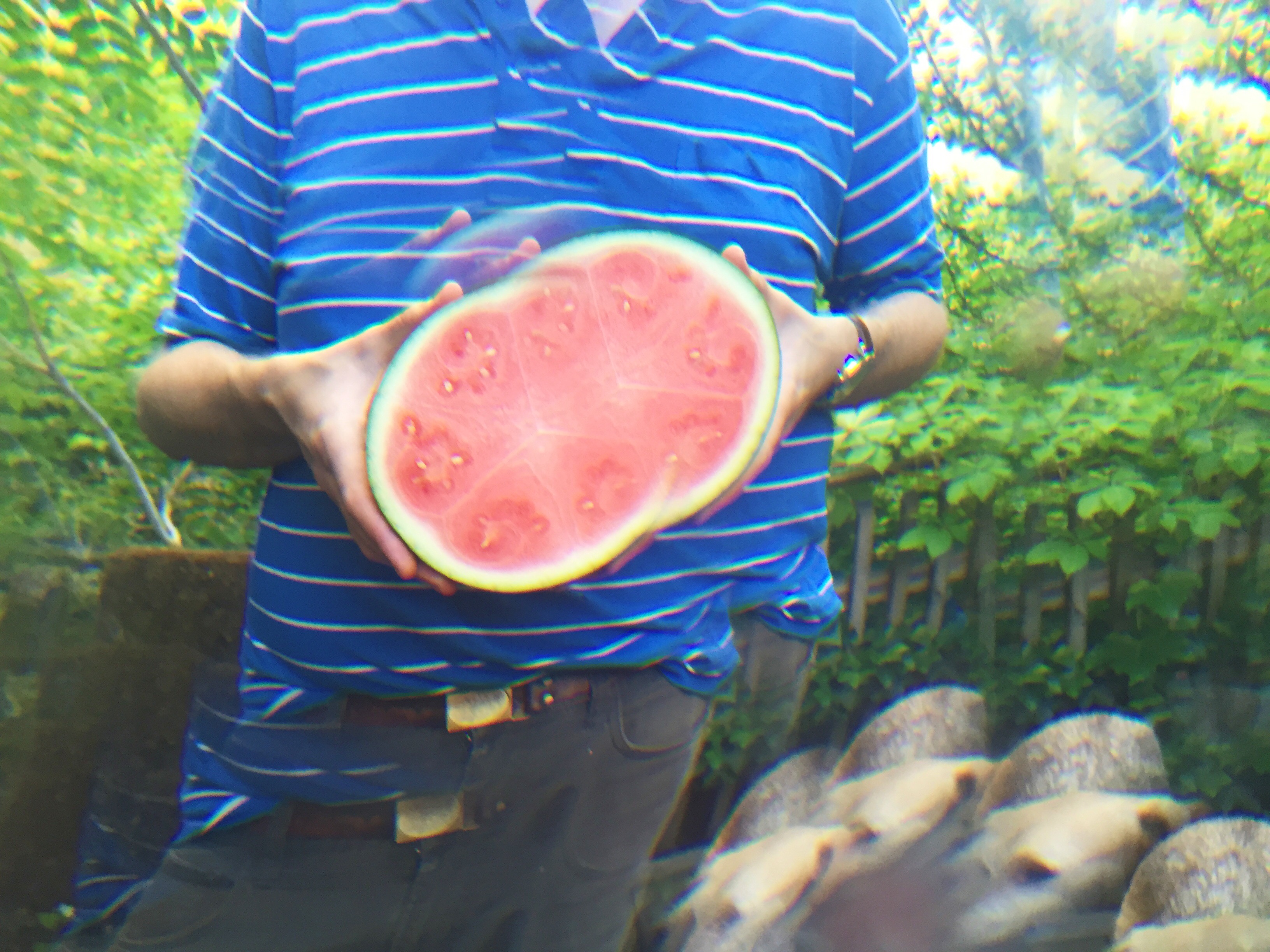 Katie is getting ready for the BBQ when Noah returns from the store with their dog in tow. She is a lovely bearded mutt and she pees a little when she greets me. Noah is making Pimms cups, which in my opinion is the most delicious way to eat a cucumber besides eating a pickle. Someone is skywriting but we can only see an E and an R from their leafy backyard.